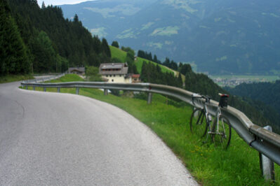The gradients are quite steep, it’s not going very smoothly so early in the climb. However, my Batavus is doing great again today. It’s my oldest bike, I’ve had it since 2000, and the wheels are still original, but it doesn’t flinch. The sting of this climb is clearly in the beginning, the first roughly 7 kilometers. It alternates between alpine meadows and forest, with occasional sections above 10 percent. After about 8 kilometers, the road flattens out a bit and returns to around 5 percent, which makes the climbing more comfortable. A few kilometers before Hochfugen, you can shift up a gear, and it’s nice racing between beautiful sweeping bends. The road surface here is also excellent, much better than the nearby Zillertaler Hohenstrasse.