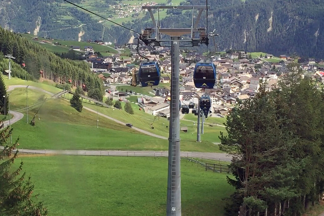 Anyway, off we go again, and the road from the cable car rises smoothly in a large curve to the right. If you’re looking for peace here while climbing, you’ll be disappointed because the next part of the climb runs parallel to the ‘Fisser Flitzer’, a toboggan run that starts from the Möseralm, which is our destination today. After the left turn with the pirate ship (!?), it gradually becomes steeper and more challenging. A steep stretch under the gondola lift follows, after which a right turn after a few hundred meters introduces a flatter section through a piece of forest to catch your breath. The last two bends are the steepest of the climb. Once at the top, you will probably be looked at strangely by all the day-trippers who wouldn’t dream of cycling up here without motorized assistance. And that’s okay too. The descent is enjoyable, but with many people and children around, of course, one to be careful with.